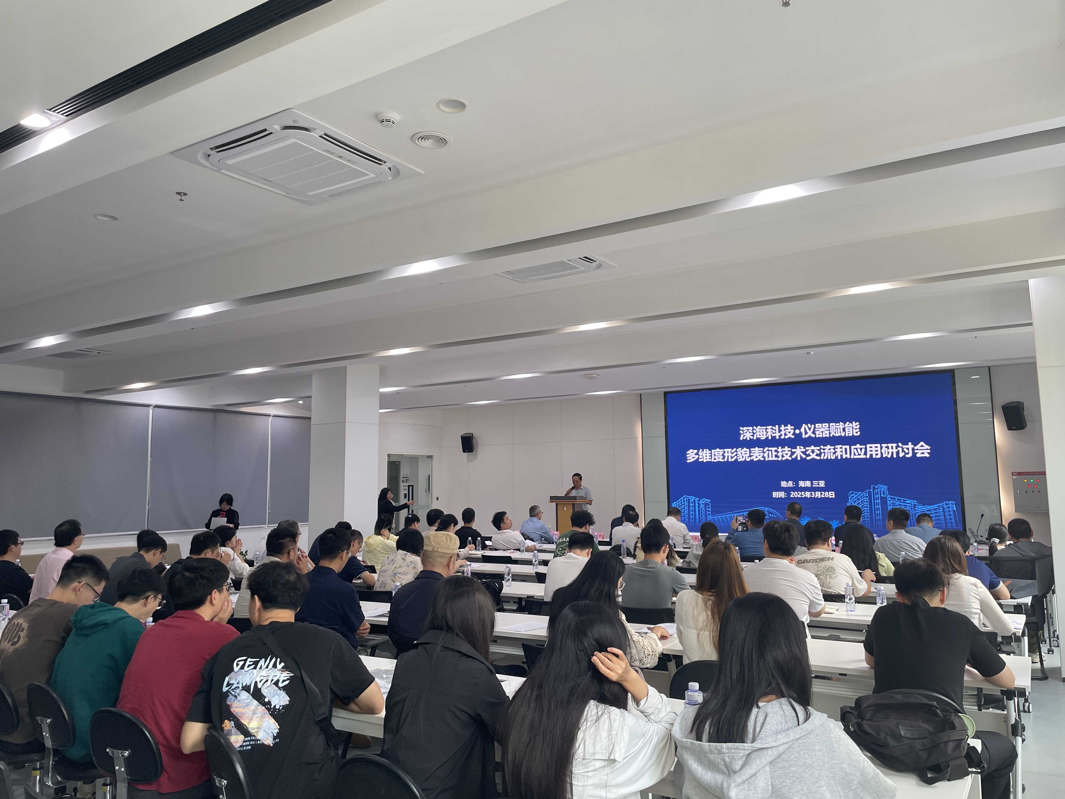 中國科學院深海科學與工程研究所崖州灣園區管理部主任張忠、崖州灣科技城管理局科研部部長彭桂華出席會議并致辭。來自國內40多家科研機構、高校及企業的120余位專家學者、技術人員參會,共同探討多維度形貌表征技術在深海領域的應用與創新。