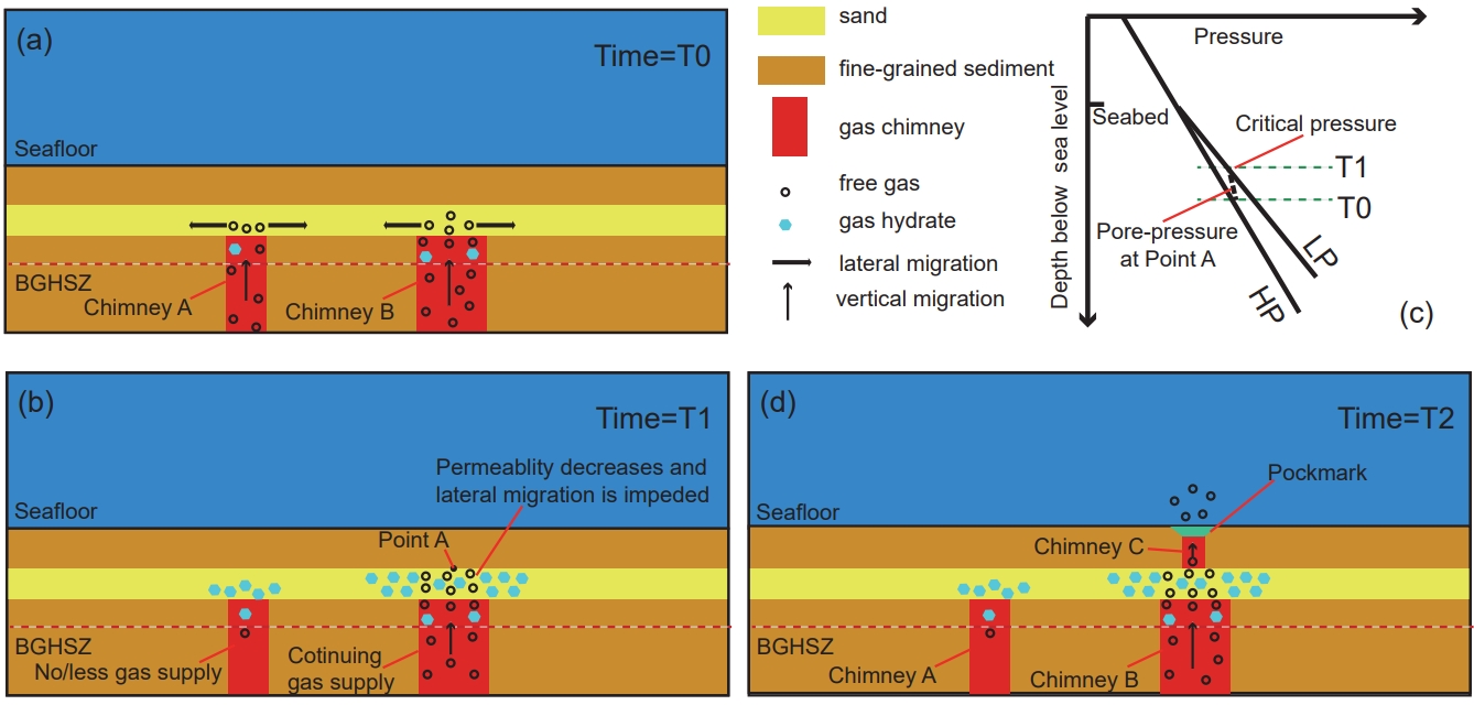 3. “泥包砂”地層中控制冷泉滲漏與天然氣水合物富集的動態(tài)演化模型